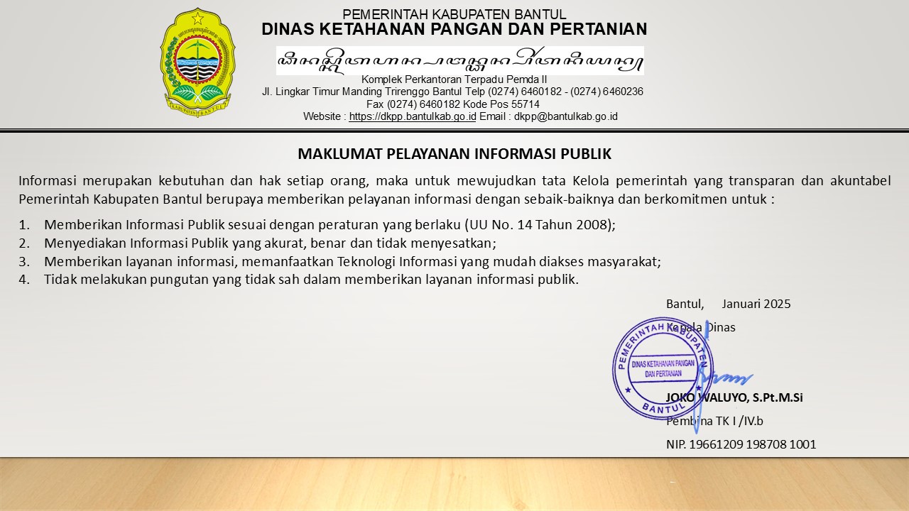 • Maklumat dan SOP Pelayanan Informasi Publik