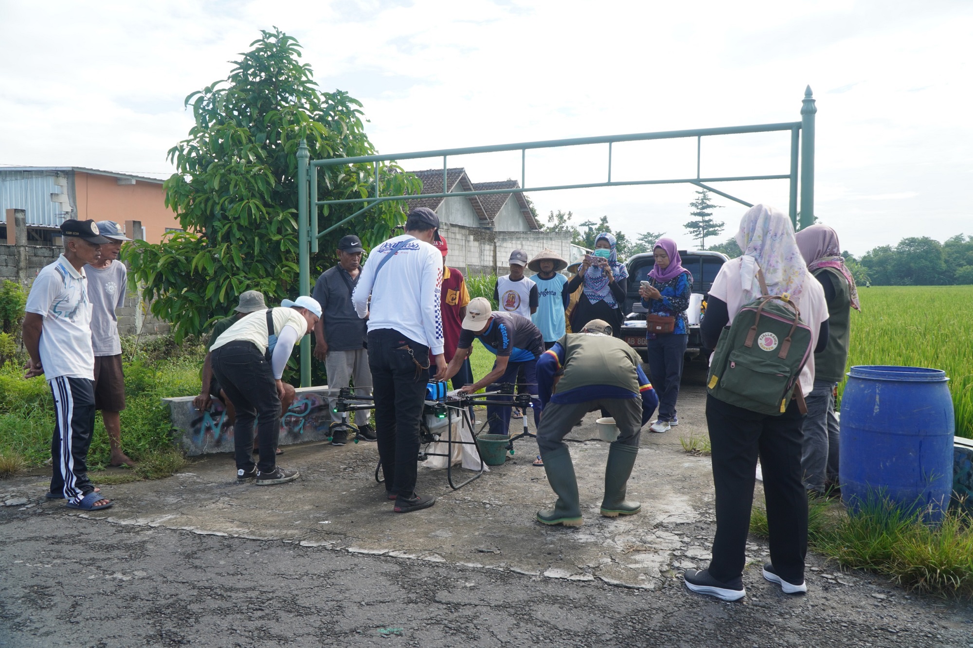 Pada Jumat, 6 Februari 2026, Petugas Pengendali Organisme Pengganggu Tumbuhan (POPT) Dinas Ketahanan Pangan dan Pertanian Kabupaten Bantul bersama Balai Penyuluhan Pertanian (BPP) Sewon dan Regu Pengendali Tanaman (RPT) Sewon melaksanakan Gerakan Pengendalian Hama Kresek Bacterial Leaf Blight (BLB) dengan memanfaatkan teknologi drone. Kegiatan ini dilaksanakan pada lahan seluas kurang lebih 2,63 hektare yang berlokasi di Kelompok Tani Budi Luhur, Dusun Kaliputih, Kalurahan Pendowoharjo, Kapanewon Sewon, Kabupaten Bantul.