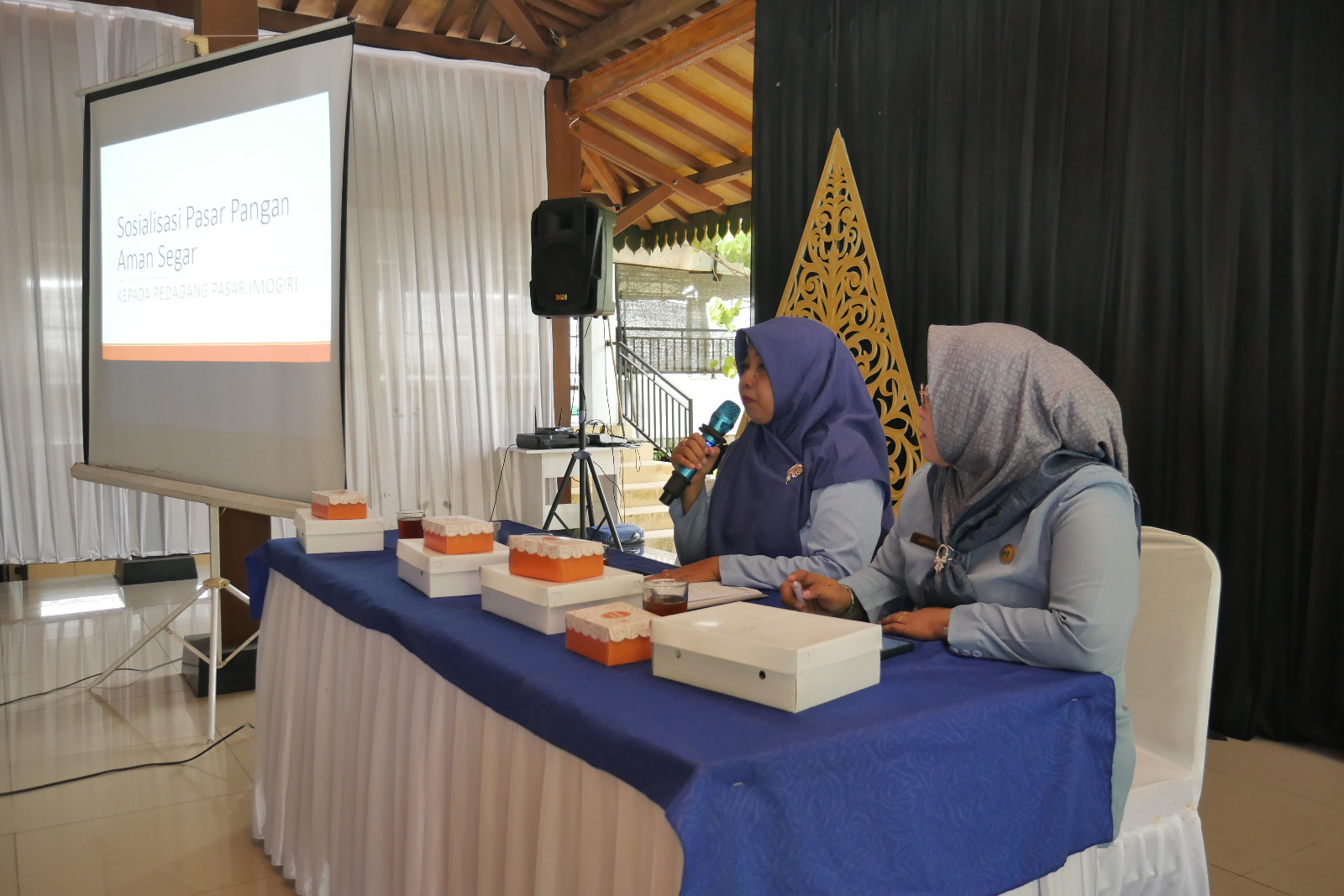 Adapun untuk narasumber berasal dari Dinas Ketahanan Pangan dan Pertanian Kabupaten Bantul yang menyampaikan materi terkait " Sosialisasi Pasar Pangan Segar Aman" oleh Kusumandari S.TP, M.Ec. Dev, "Prinsip Keamanan Pangan" oleh Umi Fuaziah S.TP. M. Sc dan "Pengawasan Higiene Sanitasi Personil, Prasarana & Sarana" oleh Susanto Saptonindyo, S.TP.