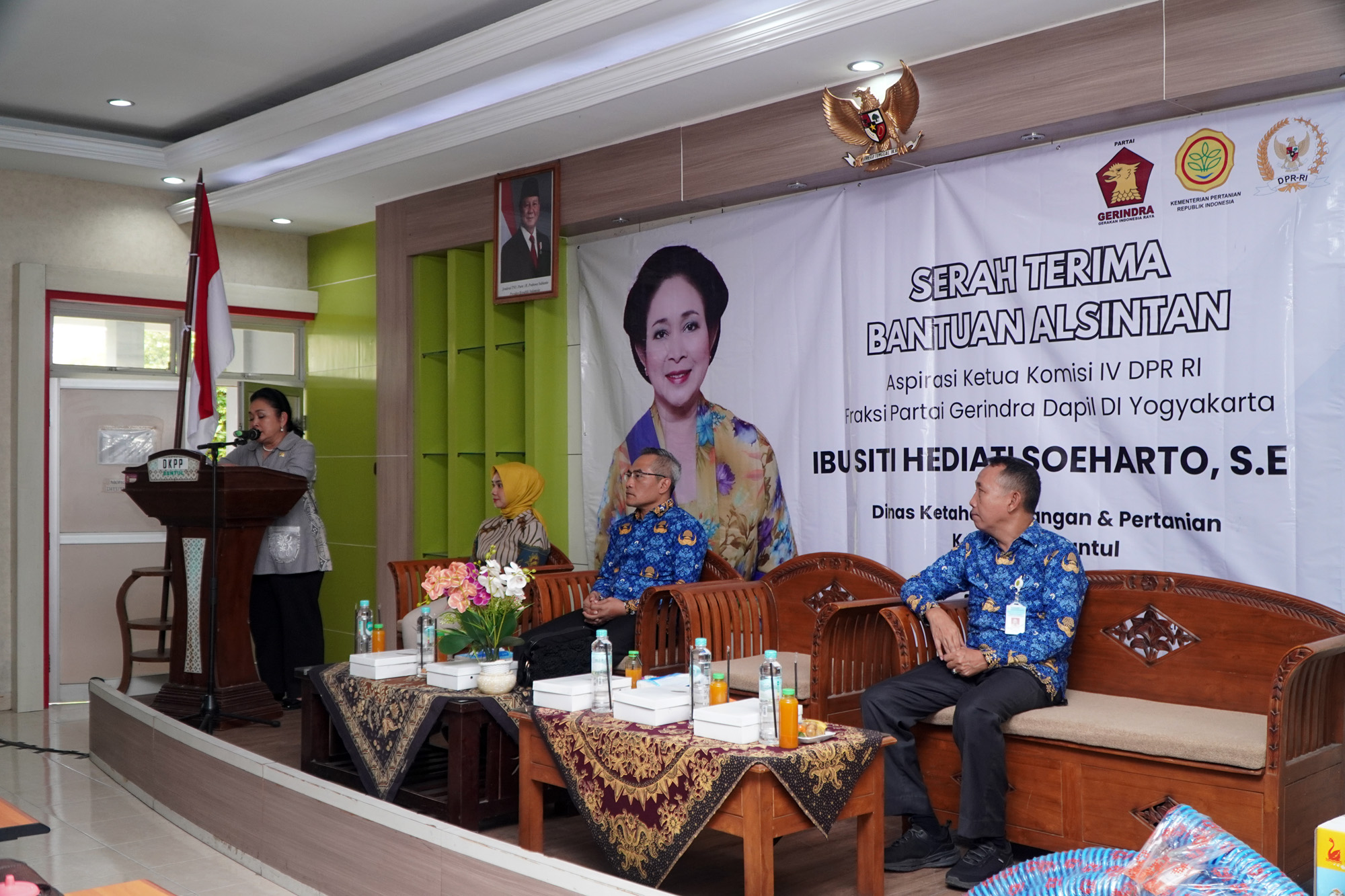 Dalam kesempatan tersebut, Komisi IV DPR RI Ibu Siti Hediati Soeharto, S.E., didampingi pejabat terkait, secara simbolis menyerahkan bantuan alsintan berupa 31 unit pompa air dan 78 unit hand sprayer kepada perwakilan petani Kabupaten Bantul.