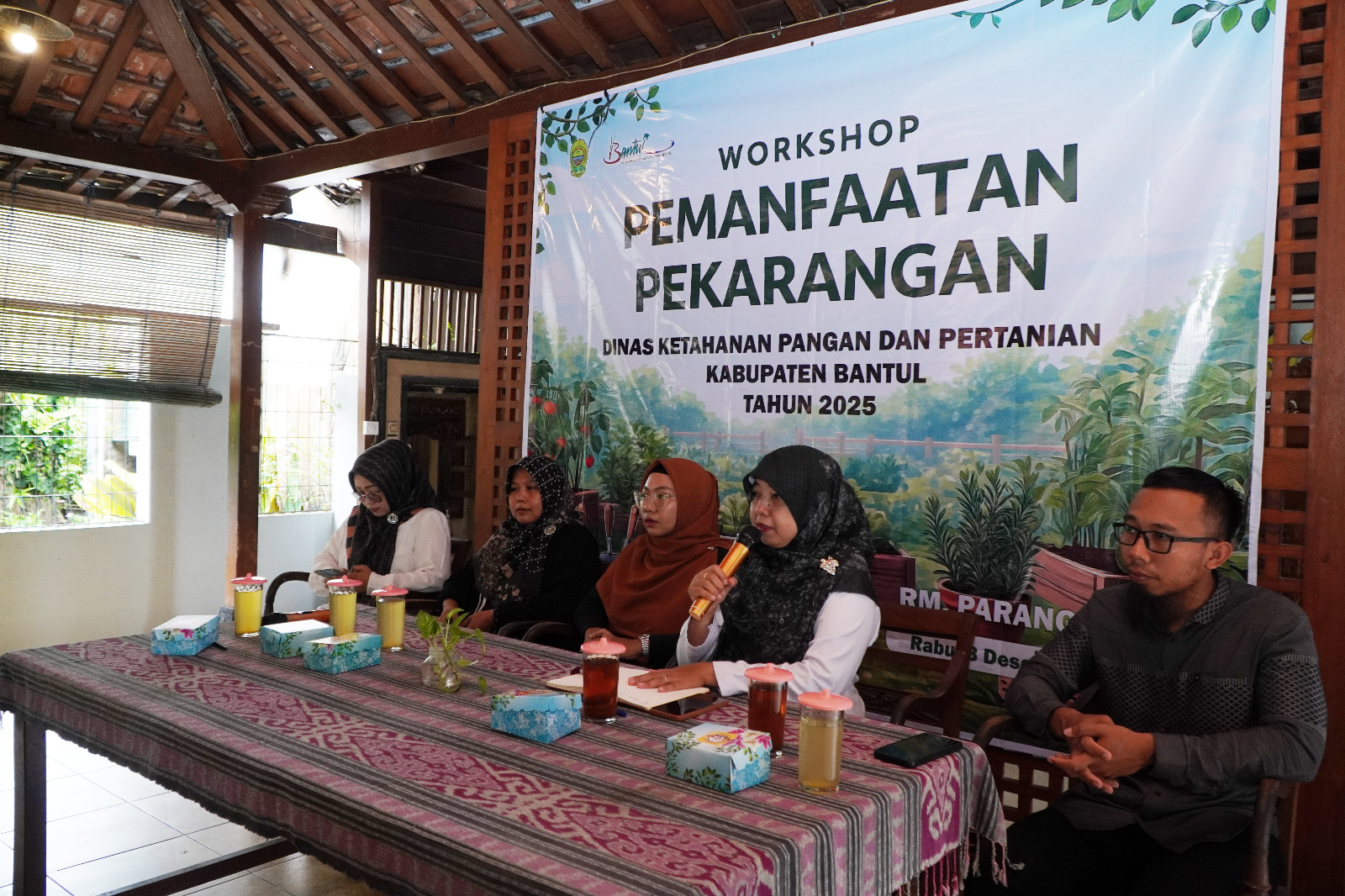 Workshop dibuka dengan sambutan dan pengarahan dari Kepala Bidang Ketahanan Pangan Dinas Ketahanan Pangan dan Pertanian Kabupaten Bantul, Kusumandari, STP, M.Ec.Dev. Acara dilanjutkan dengan penyampaian materi “Upaya Pemanfaatan Pekarangan untuk Memenuhi Ketersediaan Bahan Pangan Keluarga dan Menambah Penghasilan” oleh Duta KWT Kabupaten Bantul, Tsalis Nur Sholikhah, SE (KWT Puspa Gemari, Kedaton, Pleret). Selanjutnya, peserta mendapatkan materi “Prospek Bisnis Pemanfaatan Pekarangan” oleh Janu Muhammad dari PT. Sayur Sleman, serta materi “Pemasaran” oleh Dwi Maryanti dari KWT Kenanga 08.